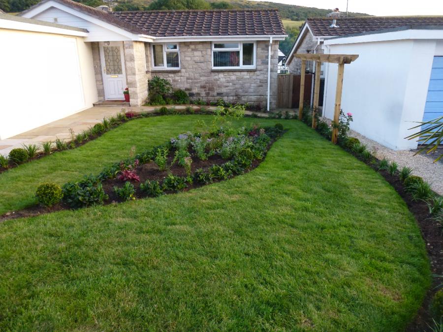 Once just a lawn was designed to have a stunning curved centre border and new planting plans to the borders edging the garden to include a beautiful palm.
